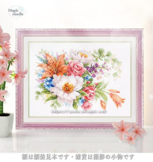 【Magicneedleマジックニードル社】apm210_313・百合のブーケ・Gentle flowers・クロスステッチキット・14CT・26×19・GAMMA糸使用