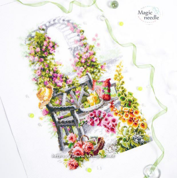 【Magicneedleマジックニードル社】apm250_065・ガーデンベンチ・Retreat garden・クロスステッチキット・16CT・18×28・GAMMA糸使用