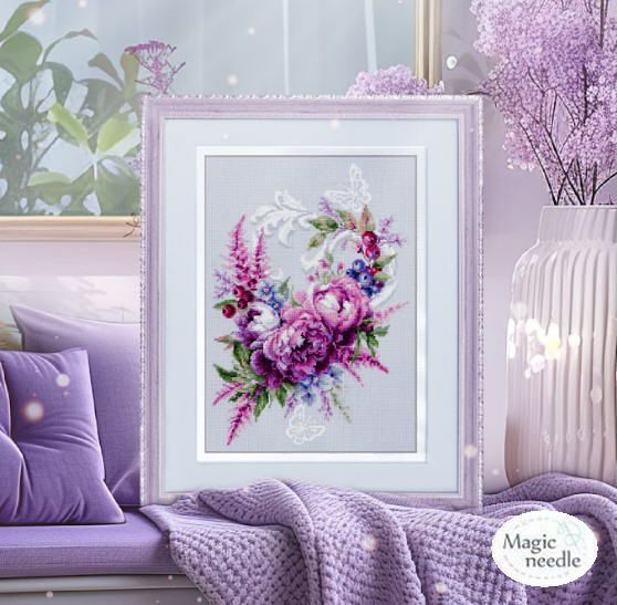 【Magicneedleマジックニードル社】apm70_04・Purple silk・紫の芍薬・クロスステッチキット・16CT・19×27・GAMMA糸使用