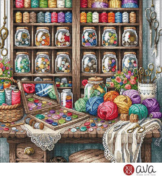 【AVA社スペイン】P022・Sewing room・手芸部屋・クロスステッチキット・16CT・32.38×32.38・LUCA-S+DMC社糸・全面刺し
