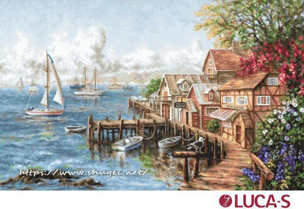 ●廃番・在庫限り●箱入り【Luca-sルーカス社】B2405・Mariner's Haven・ヨットと港・風景画・クロスステッチキット・16ct布・59×38・全面刺し・ハイレベル