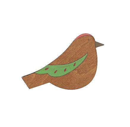 【木製】小鳥茶色に緑ライン・マグネットチャートホルダー+ニードルネスト・刺繍便利道具・kf059_200_2_greenbird
