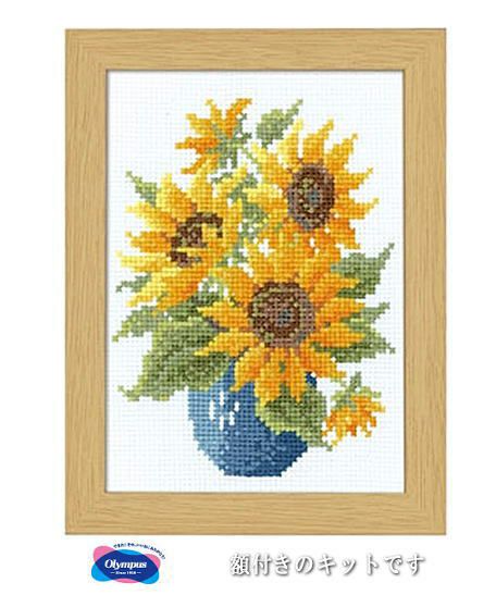 【オリムパス社】7514・8月サンフラワー・クロスステッチキット・13CT・16.6×11.6・額付き・初心者向簡単・olympus