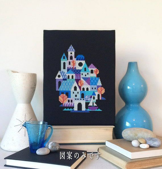 SATSUMA STREETサツマストリート社・516095【青い街並み】blue village・クロスステッチ図案のみ