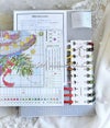 刺繍布・刺繍糸・針・図案同封。カラー図案なので見やすいですよ。