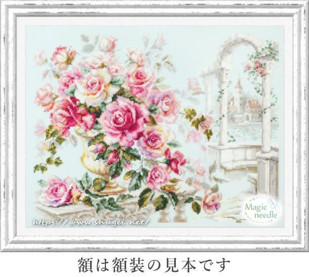 【Magicneedleマジックニードル社】apm110_011・ピンクローズ・Roses for the Duchess・クロスステッチキット・14CT・40×30・GAMMA糸使用