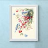 【Magicneedleマジックニードル社】apm130_021・青い小鳥とチェリー・Blue tits and cherry・クロスステッチキット・14CT・25×35・旧パッケージ・GAMMA糸使用
