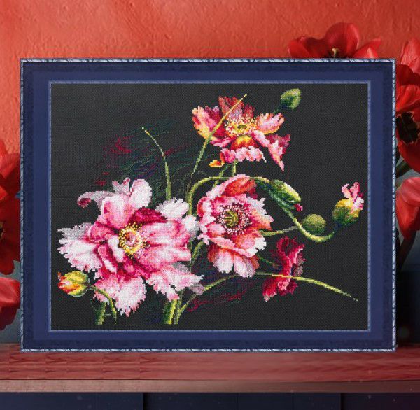 ●在庫限り・終了●【Magicneedleマジックニードル社】apm210_192・ポピー・The Mystery of Poppies・クロスステッチキット・14CT黒布・40×30・GAMMA糸使用