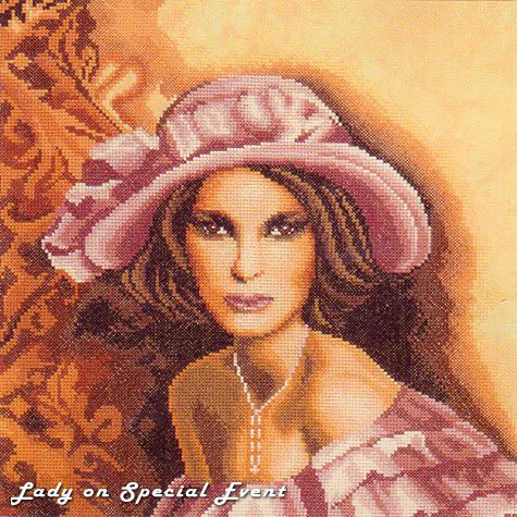 宅配便限定 ・30%OFF・lanarte35100・女性人物画印刷布・Lady on Special Event・クロスステッチキット・27ct・30×30・上級者向・ラナーテ社