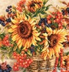 向日葵の黄色と赤い木の実・ブルーベリーの紫・籠の茶色中心に、