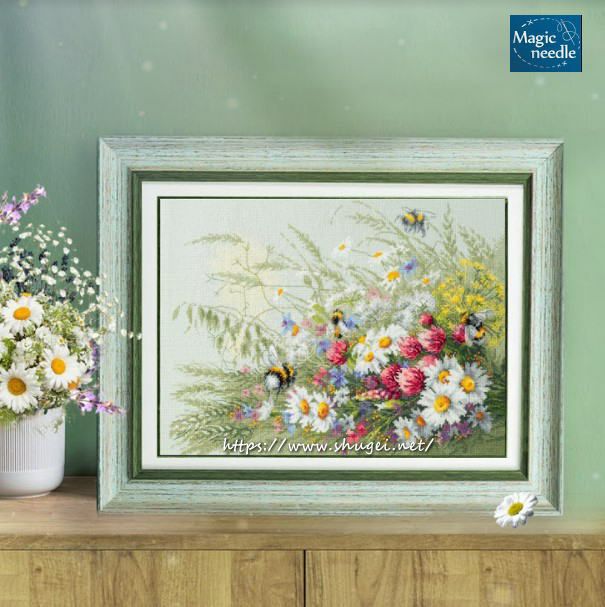【Magicneedleマジックニードル社】apm510_225・デイジーとクローバー・Daisy and clover・クロスステッチキット・14CT・40×30・DMC糸使用