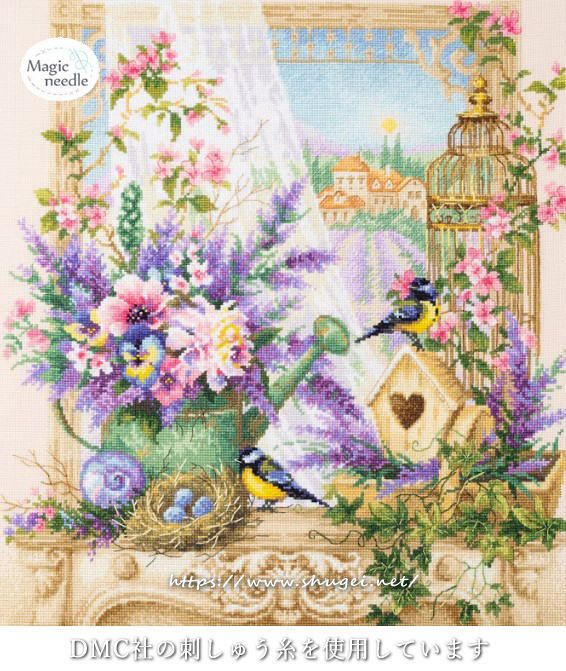 【Magicneedle社】apm515_280・小鳥とお花・The Scent of Provence・クロスステッチキット・DMC糸使用