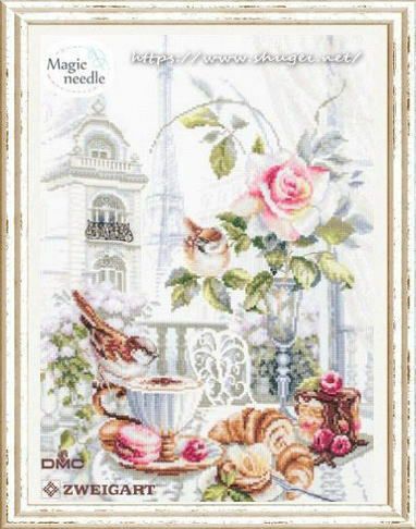 【Magicneedleマジックニードル社】apm528_558・小鳥と朝食・Parisian Morning・クロスステッチキット・14CT・30×40・DMC糸使用