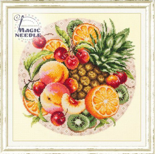 【Magicneedleマジックニードル社】apm54_04・南国フルーツバスケット・果物静物・クロスステッチキット・14CT・27×27・GAMMA糸使用