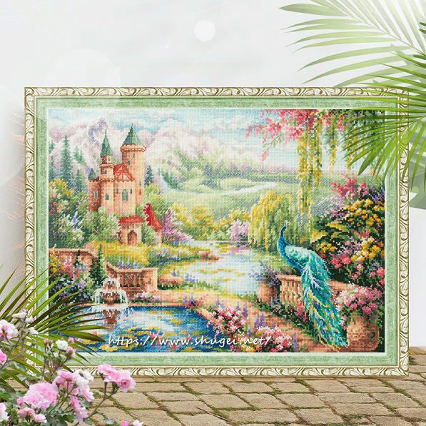 【Magicneedleマジックニードル社】apm550_763・クジャクと庭園・RoyalGarden・クロスステッチキット・14CT・40×30・DMC糸使用・全面刺し・難易度高め
