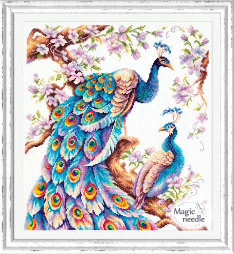 【Magicneedleマジックニードル社】apm64_06・孔雀2羽と桜・風景画・クロスステッチキット・14CT・32×36・GAMMA糸使用