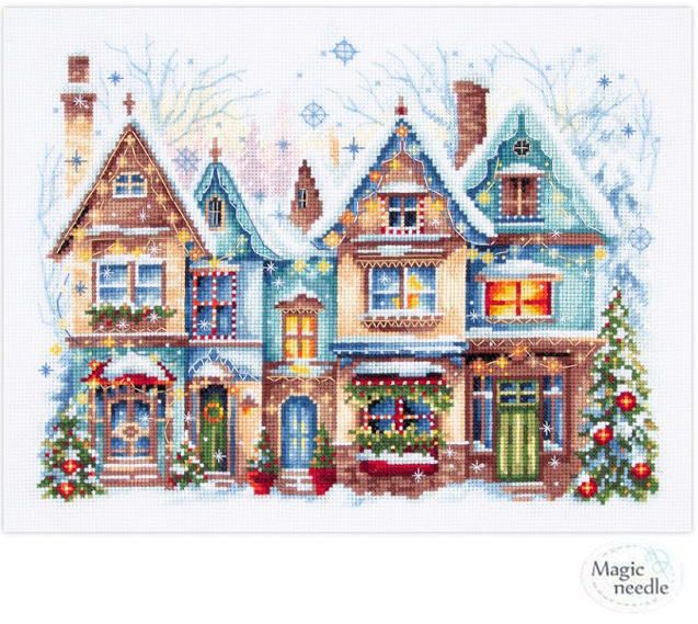 【Magicneedleマジックニードル社】apm70_23・HeartWarming・クリスマスタウン・クロスステッチキット・16CT・26×20・GAMMA糸使用