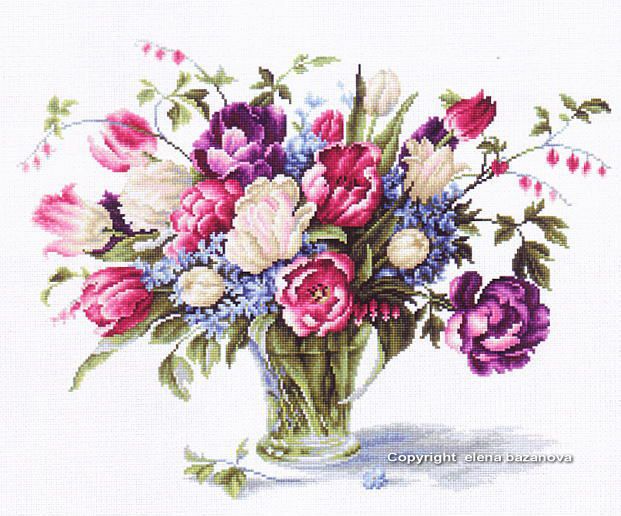 Elena Bazanova・ チューリップ・tulipプーケット・flower・Elena Bazanova・花瓶・ヨーロピアンフラワーアレンジメント