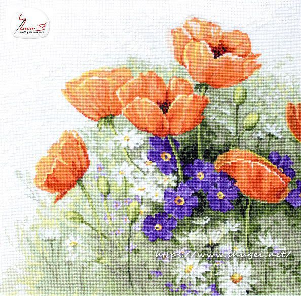 【Luca-sルーカス社】B2368・Poppies・オレンジポピー・お花・クロスステッチキット・18ct布・28×28・ほぼ全面刺し