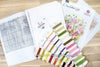 刺繍布・刺繍糸・針・白黒図案同封。糸は色別に分別されています。
