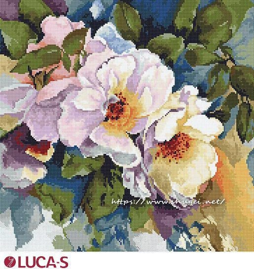 【Luca-sルーカス社】B2402・Roses・薔薇・水彩画風・クロスステッチキット・16CT・29×29・ほぼ全面刺し