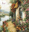 全面刺しハイレベル【Luca-s社】Along the River・コテージと川の風景画・B581
