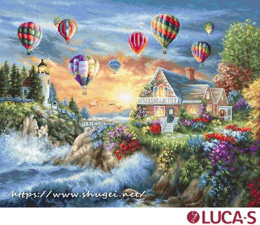 全面刺し【Luca-s社】B614・Balloons over Sunset・気球と海・風景画・刺繍キット