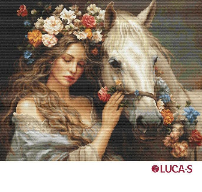 箱入り【Luca-sルーカス社】B620・The Flower Fairy・妖精と白馬・クロスステッチキット・16ct布・44×35・ライン入・全面刺し