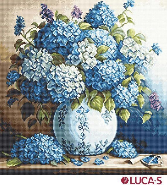 【Luca-sルーカス社】B700・Base with hydrangeas・青紫陽花・クロスステッチキット・16CT・32×33・LUCA-S社糸・ほぼ全面刺し