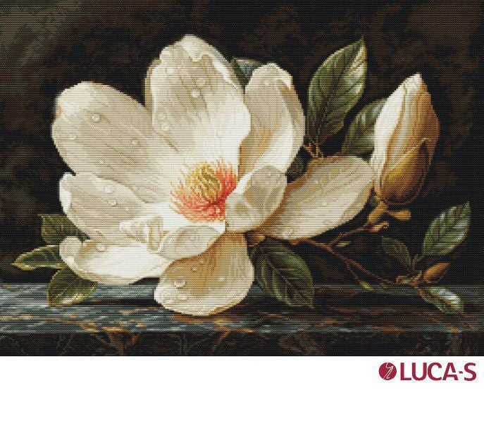 【Luca-sルーカス社】B713・Magnolia dew・木蓮マグノリア・クロスステッチキット・ライン入16CT・38×28・LUCA-S社糸・全面刺し