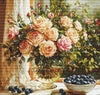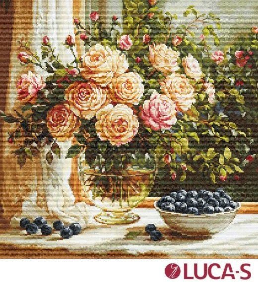 箱入り【Luca-sルーカス社】B719・Vase with Roses・バラとブルーベリー・クロスステッチキット・ライン入り16CT・35×35・LUCA-S社糸・全面刺し