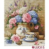 箱入り【Luca-sルーカス社】B725・Floral Nostalgia・紫陽花とバラ・クロスステッチキット・ライン入り16CT・32×36・LUCA-S社糸・全面刺し