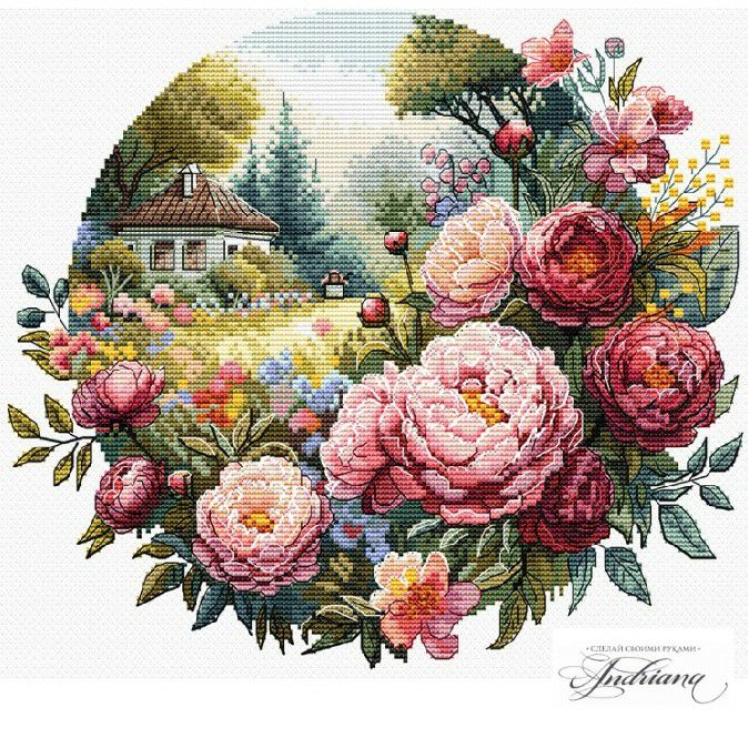 SDELAYセデレイ社・B-46・Breath of the morning・朝の庭園・芍薬・クロスステッチキット・16CT・25×22・ロシア