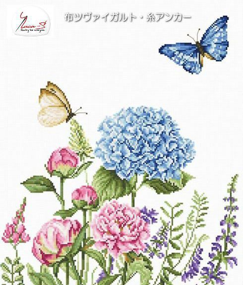 ●廃番・在庫限り●【Luca-sルーカス社】BA2360・Summer Flowers and butterfly・夏の花と蝶・クロスステッチキット・16ct布・26.5×31.5