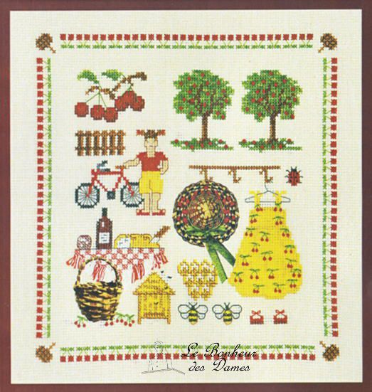 宅配便限定 ●在庫限り●Le Bonheur des Dames・ボヌール2612・【麦わら帽子とチェリー飾り付】・クロスステッチキット・18CT・20×21