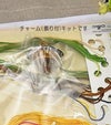 パッケージには、布+糸+針+図案(白黒印刷)と飾りが同封されています。