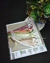 パッケージには、布+糸+針+図案(白黒印刷)と飾りが同封されています。