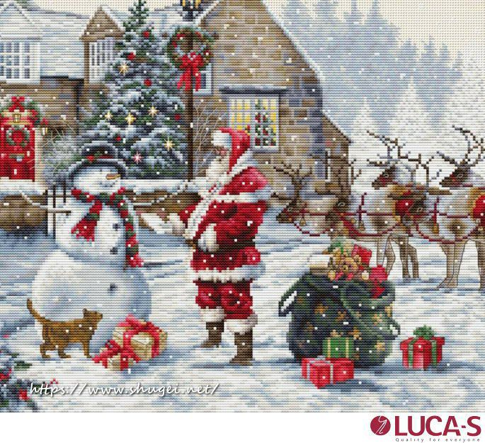 箱入り【Luca-sルーカス社】BU5011・Santa's Cottage・サンタ・クリスマス・クロスステッチキット・16CT・48×32・ほぼ全面刺し・LUCA-S社糸