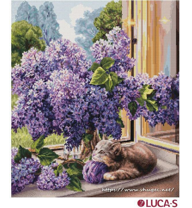 【Luca-sルーカス社】BU5015・The dreamer・猫とライラック・クロスステッチキット・16CT・32×37・全面刺・LUCA-S社糸
