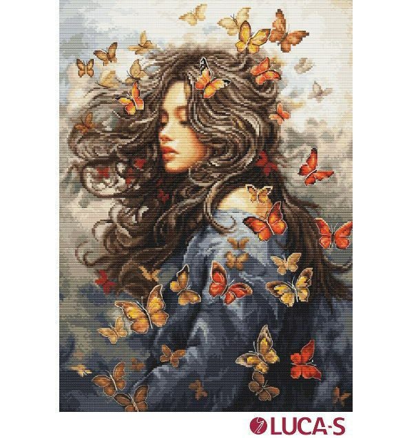 箱入り【Luca-sルーカス社】BU5085・Passion in flight・女性と蝶・クロスステッチキット・ライン入り16CT・29×40・LUCA-S社糸・全面刺し