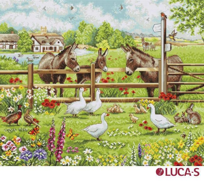 箱入り【Luca-sルーカス社】BU5087・Donkeys yard・ロバと動物・クロスステッチキット・ライン入り16CT・LUCA-S社糸・全面刺し