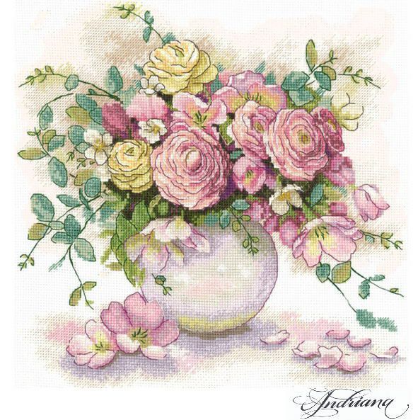 SDELAYセデレイ社・C-71・Symphony of Summer・サマーブーケ白花瓶・クロスステッチキット・16CT・23.5×23.5・ロシア