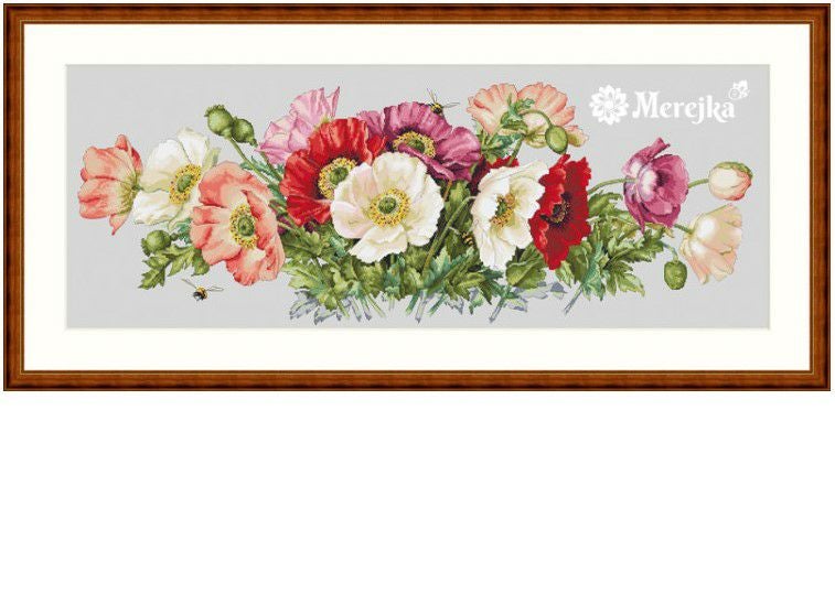 【Merejkaメレイカ社】k-33・Poppies・ポピー横長・クロスステッチキット・16CT・80×30・DMC糸