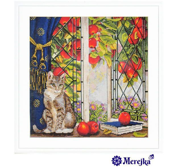 【Merejkaメレイカ社】k-89・Early Autumn・猫とりんご・クロスステッチキット・16CT・29×29・DMC糸・ほぼ全面刺し