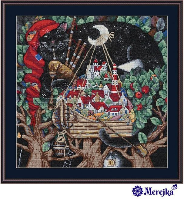 【Merejkaメレイカ社】k-112・Old Melody・黒猫とお家・クロスステッチキット・16CT・37.5×37.5・DMC糸