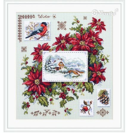 【Merejkaメレイカ社】k-119・Winter Sampler・冬ポインセチア・クロスステッチキット・16CT・30×32・DMC糸