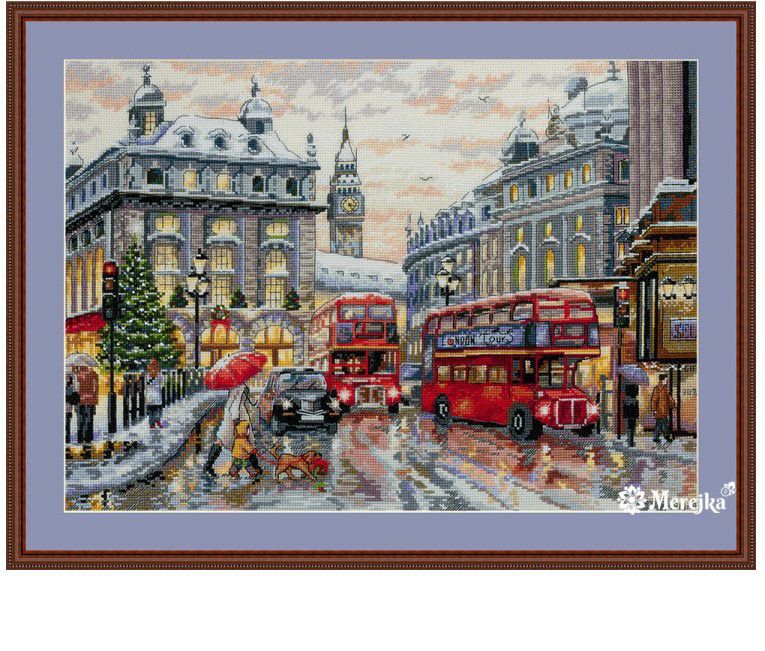 【Merejkaメレイカ社】k-159・London・雪のロンドン風景画・クロスステッチキット・16CT・30×40・DMC糸・全面刺し