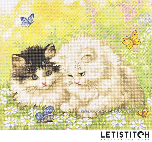 ほぼ全面刺し【Letistitch社】954・Summer play time・猫ちゃん・刺繍キット・16CT・32×27・中~上級者向