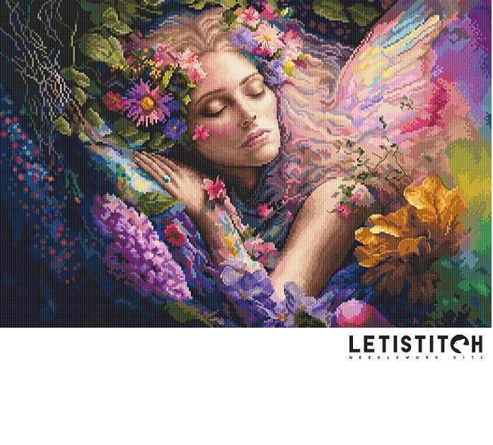 【Letistitchレッティステッチ社】L8081・Bed of Flowers・花の妖精・クロスステッチキット・16CT・28×42・全面刺し