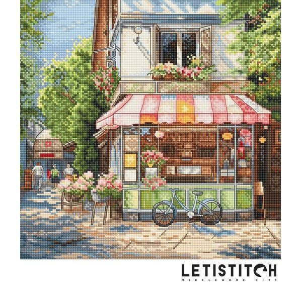 【Letistitchレッティステッチ社】L8101・Corner Shop・街角のお店屋さん・クロスステッチキット・16CT・24×24・全面刺し